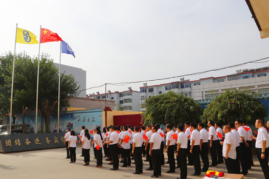 奮斗百年路,開啟新征程。上午8時(shí),公司三名退伍軍人充當(dāng)護(hù)旗手邁著鏗鏹有力的步伐走向升旗臺,在雄壯嘹亮的國歌聲中,鮮艷的五星紅旗冉冉升起。全體員工列隊(duì)整齊,精神飽滿,用深情的注目禮表達(dá)對黨、對祖國的無限忠誠和熱愛。